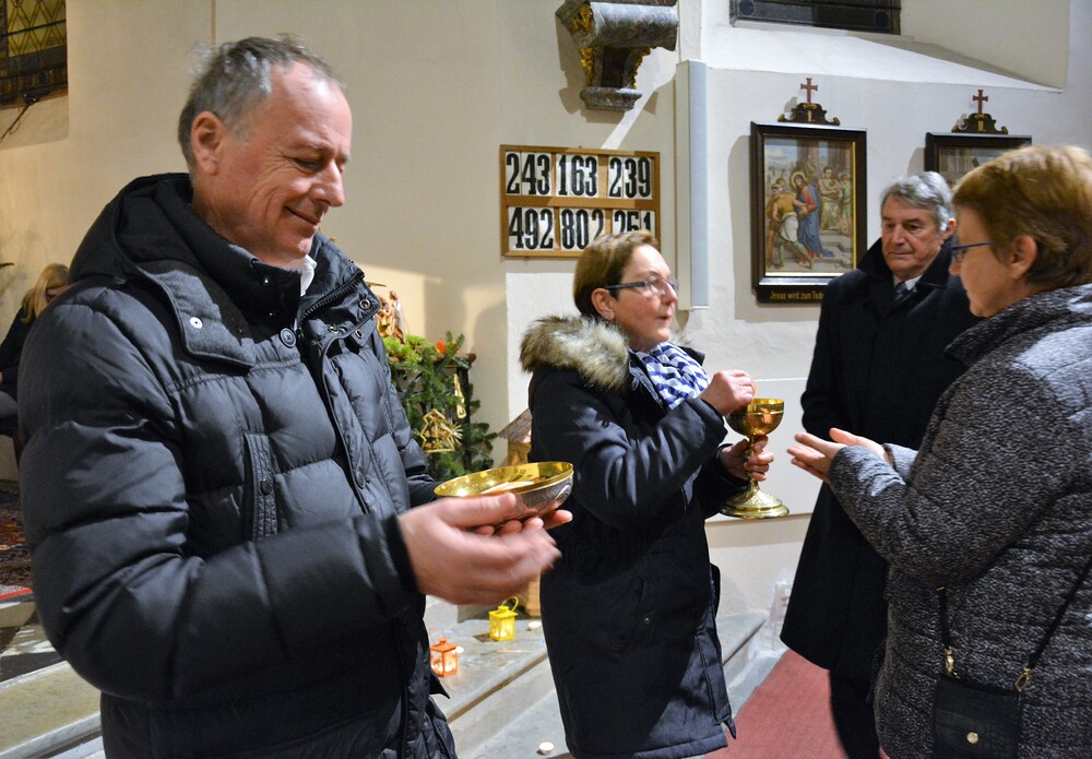 Lieber Franz! Vor einundzwanzig Jahren bist du als Pastoralassistent in die Pfarre Tobelbad gekommen und mit 30. November 2023 gehst du nun in Pension. Vielfältig war dein Wirkungskreis: Firmvorbereitung – gemeinsam mit deiner Frau Anni, Kinderfasching, Kinderkreuzweg, Kinderfeste am Sonnenweg, Hausbesuche als Nikolaus u. v. m. Deine musikalische Begabung war bei Gottesdiensten und Ausflügen gefragt. Wort-Gottes-Feiern in der Kirche und Reha-Klinik, Osterspeisensegnungen und Wachtgebete nicht zu vergessen. Dreimal im Jahr fanden Heilungsgebete, deren Initiator und Gestalter du bist, statt. Viele Jahre lang warst du für das Pfarrblatt verantwortlich. Der Einstieg in die Digitalisierung mit der ersten Pfarrhomepage im Jahr 2010 ist dir gelungen. Als Flüchtlinge in den Pfarrhof einzogen, wurde ein neues und bis dahin unbekanntes Kapitel aufgeschlagen, welches dir viel Arbeit und Sorge bereitete. Die Krankenhausseelsorge in der Rehaklinik war dir immer schon ein Anliegen und in der Altersteilzeit eine erfüllende Aufgabe. Wir wissen, dass dir als ausgebildeter Masseur mit eigener Praxis sicher nicht langweilig wird. Wir hoffen aber, dass du die Pfarre auch in deinem neuen Lebensabschnitt unterstützen wirst. Wir sagen Danke und wünschen Gottes reichen Segen für dein weiteres Wirken Pfarrer Claudiu, das Pastorale Pfarrteam Tobelbad und deine langjährige ehrenamtliche Mitarbeiterin bei Pfarrblatt und Homepage, Gerti Reiterer