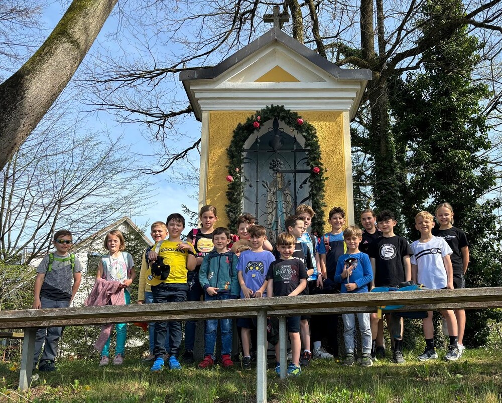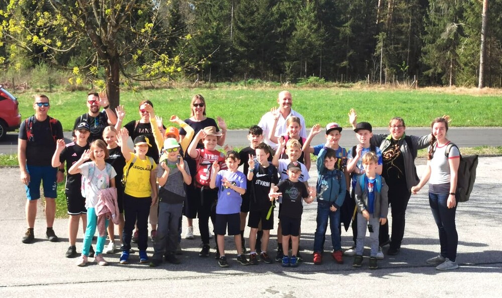Wandertag der Jungschargruppe bei traumhaftem Wetter von der Kirche in Tobelbad nach Haselsdorf zum Bildstock Kreuzkogel. Danach ging’s noch auf den Spielplatz. Gerlinde Krenn