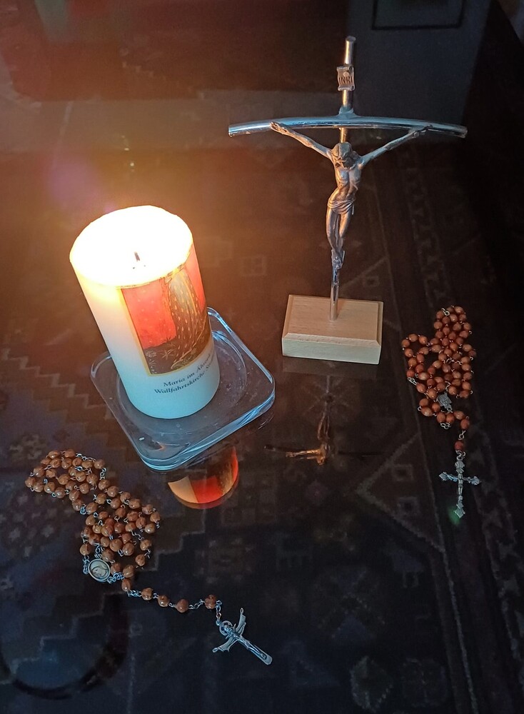 Im Anschluss an die Wort-Gottes-Feier wurde für Vikar Gerhard Hatzmann zu seinem 35-jährigen Weihejubiläum ein Rosenkranz gebetet. Vorgebetet haben Berta Regier und Alois Jaunegg.