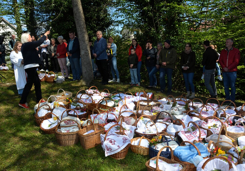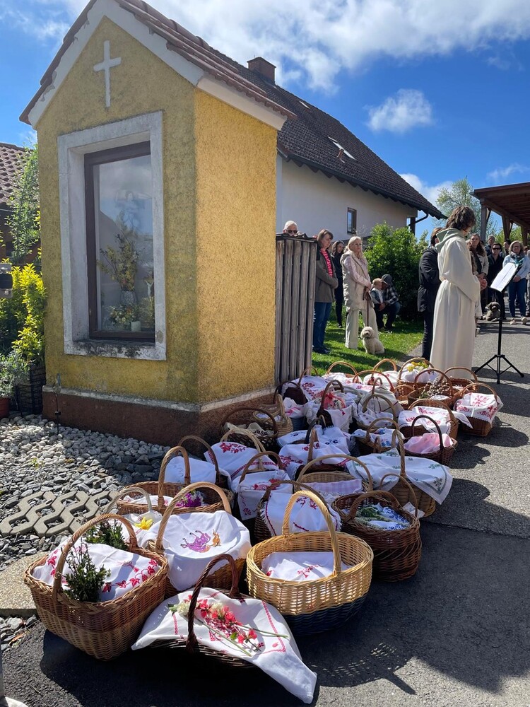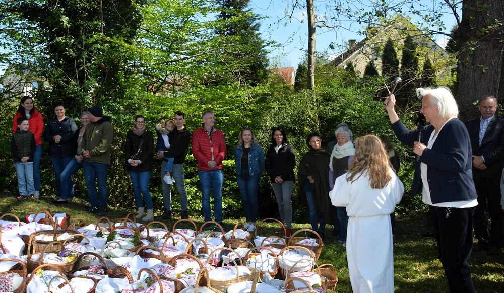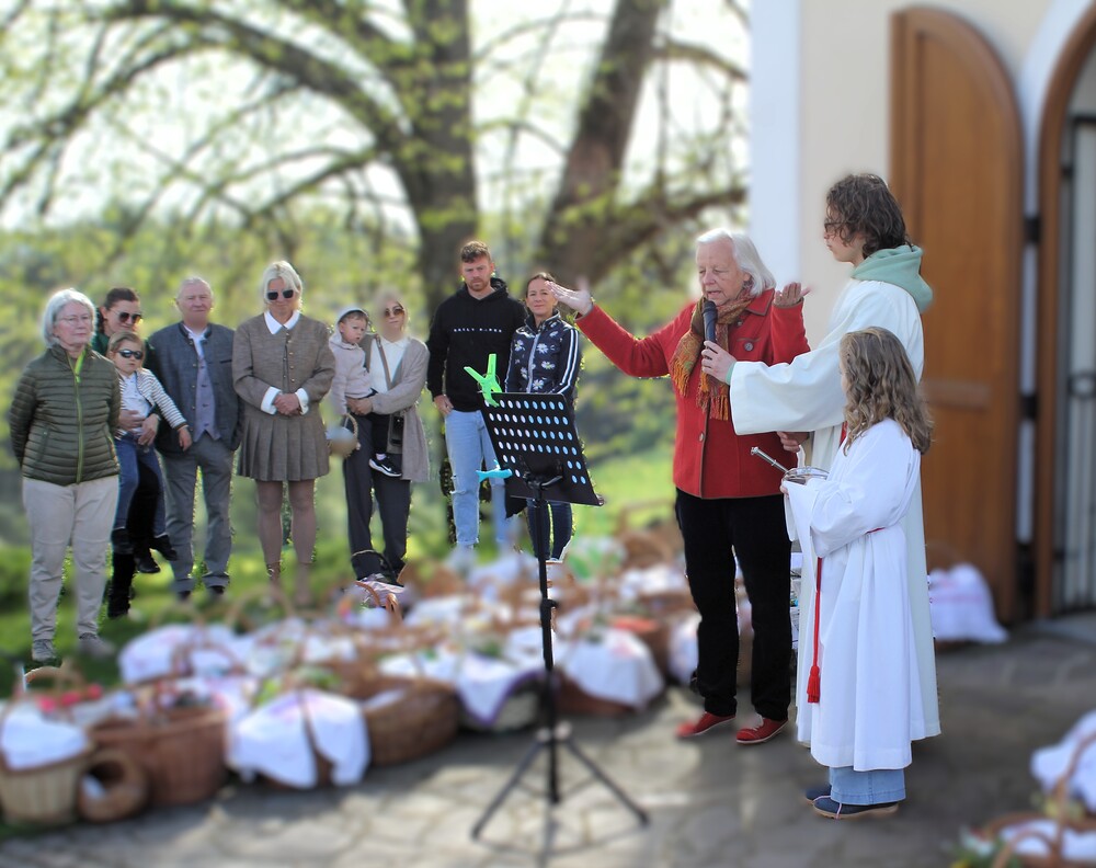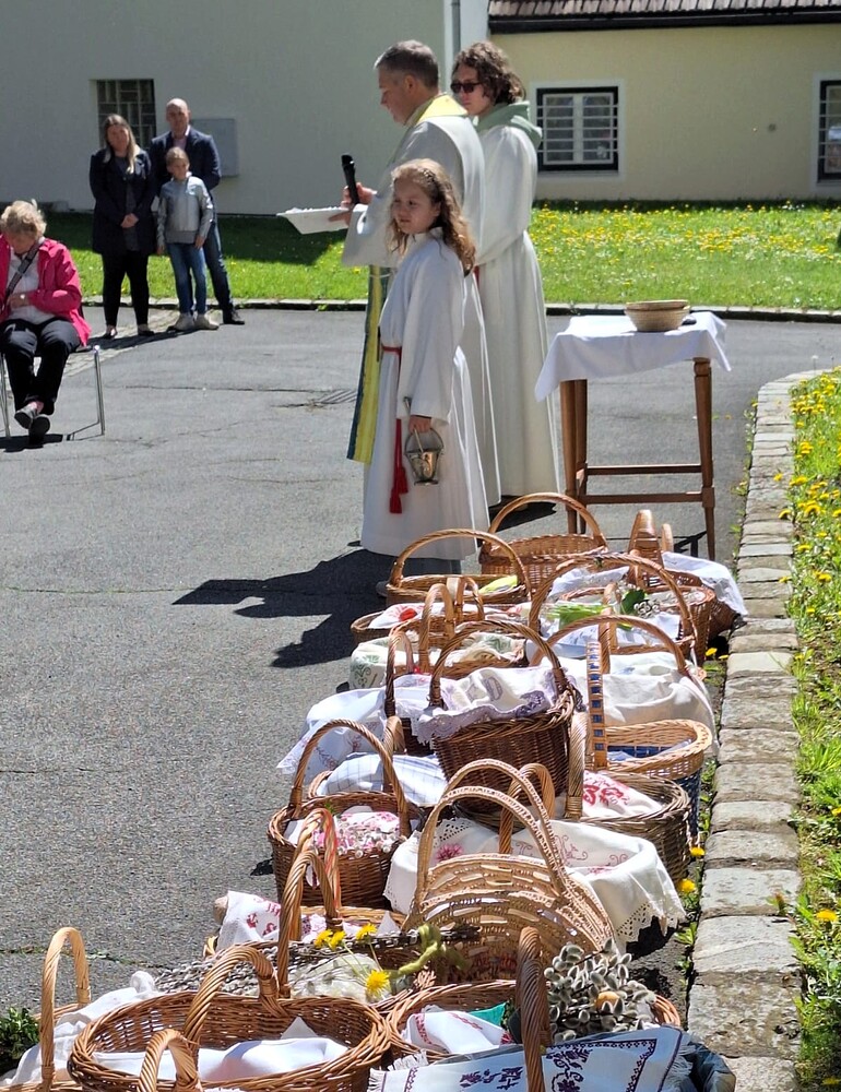 OSTERSPEISENSEGNUNGEN Der Segen für die Osterspeisen darf in keiner Familie fehlen. Schön ist, dass heuer besonders viele Familien mit ihren zum Teil kleinen Kindern gekommen sind, um diese Segensfeier miteinander zu begehen. Unterstützt von Luis Jaunegg, Ministrantin Flora und Ministrant Pascal, haben die Wort-Gottes-Feier-Leiterinnen Susanne Linhardt und Margret Hofmann sowie Pfarrer Claudiu Budău an fünf Kirchorten die Osterspeisen gesegnet. Margret Hofmann, Pastorales Pfarrteam Liturgie und Öffentlichkeitsarbeit