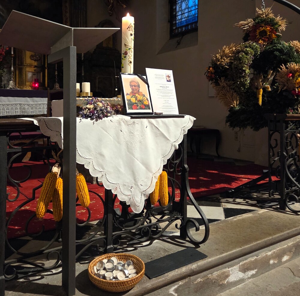Viele Erinnerungen weckte Berta Regier mit ihren Worten bei den Teilnehmer:innen des Totengebets für Kathi Blüml am 23. Oktober 2025. Auch die stimmungsvolle Musikauswahl von Luis Jaunegg trug zu einer würdigen Verabschiedung bei. Bei der anschließenden Agape bot sich die Gelegenheit, sich über gemeinsame Erlebnisse auszutauschen – ganz so, wie es Kathi gefallen hätte. Margret Hofmann