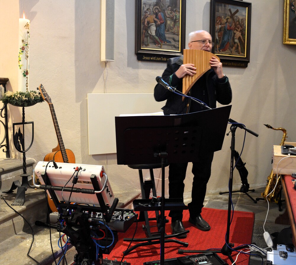 Paul Tschuffer unterstrich diese Botschaft mit stimmungsvollen Melodien und dem Lied von Reinhard Mey „Liebe ist alles, Liebe ist mehr“.