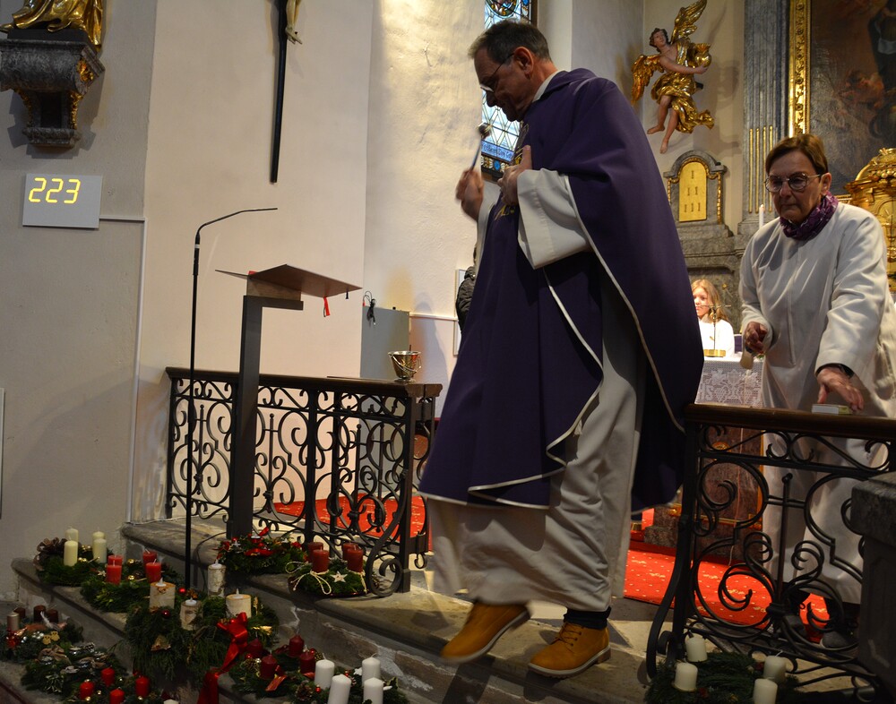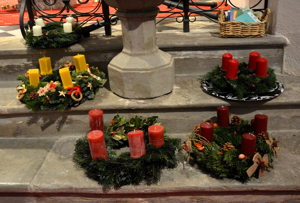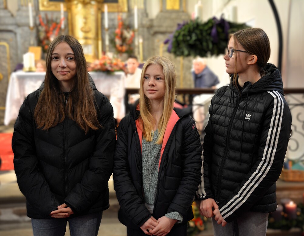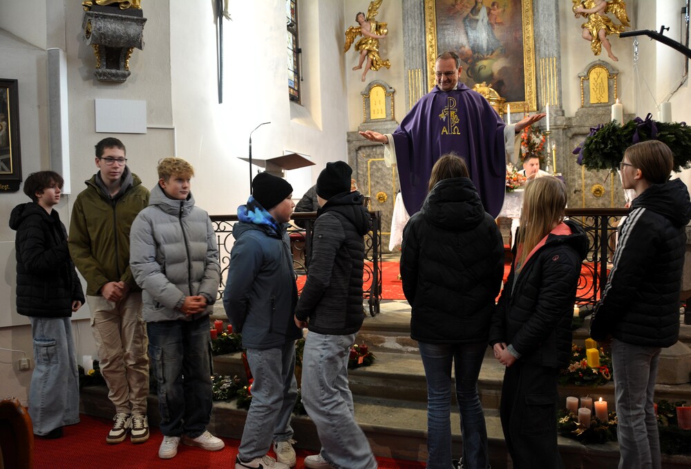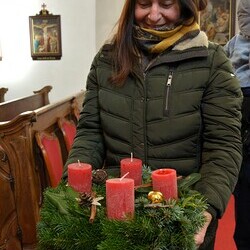 „Seid wachsam“ fordert uns Jesus im heutigen Matthäusevangelium auf. Zu dieser Wachsamkeit lädt auch Vikar Gerhard Hatzmann die Firmlinge ein, die mit der Firmung zu vollwertigen Mitgliedern der Pfarrgemeinde werden. Mit ihren Fragen und ihren Beiträgen gestalten sie die Kirche der Zukunft aktiv mit. Alexandra Deutsch und Hermine Neubauer begleiten zwei Firmgruppen in der Vorbereitung. Gemeinsam haben sie Adventkränze geschmückt, die heute zur Segnung in die Kirche gebracht wurden.
