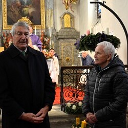 Für die Restaurierung der Marienstatue am Friedhof bedankt sich die Pfarre herzlich bei Rupert Koch aus Lieboch. Siegfried Fassolter, Obmann des Friedhofsvereins, überreicht ihm als Zeichen des Dankes einen Geschenkkorb. Margret Hofmann, Pastorales Pfarrteam Liturgie und Öffentlichkeitsarbeit