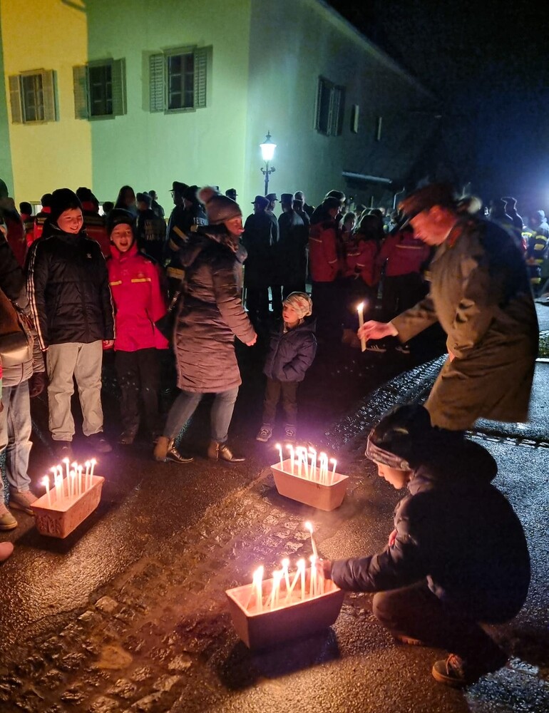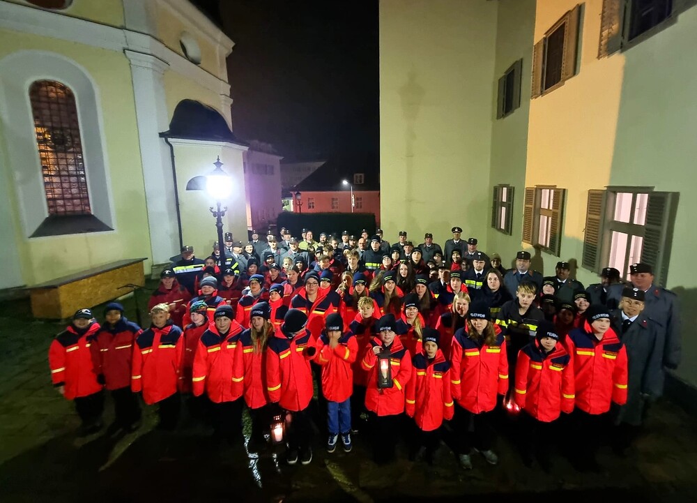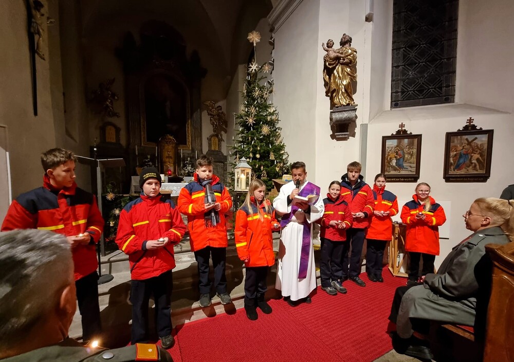 Friedenslicht Die Feuerwehrjugend des Seelsorgeraums ist am 24. Dezember in die Pfarrkirche Tobelbad gekommen, um das Friedenslicht abzuholen. Mit Segen und Laternen sind die Jugendlichen anschließend in ihre Heimatfeuerwehren zurückgekehrt, um allen Menschen das Weihnachtslicht zu bringen.