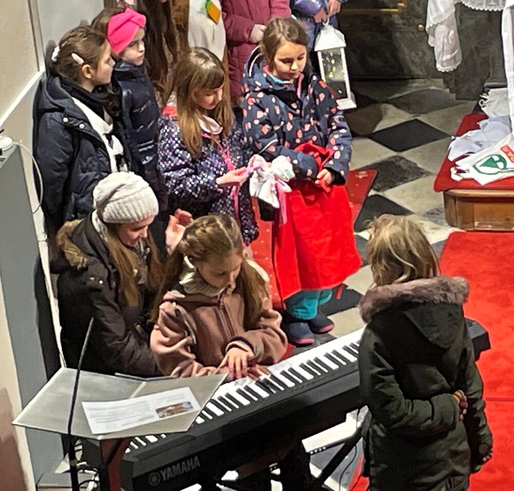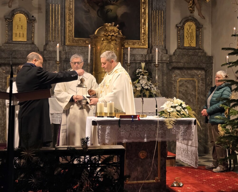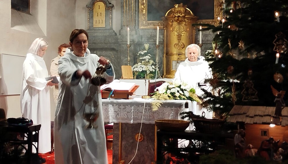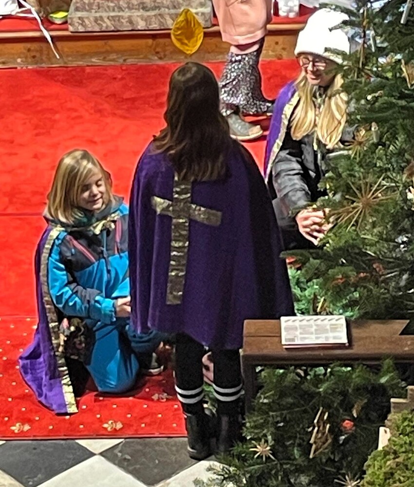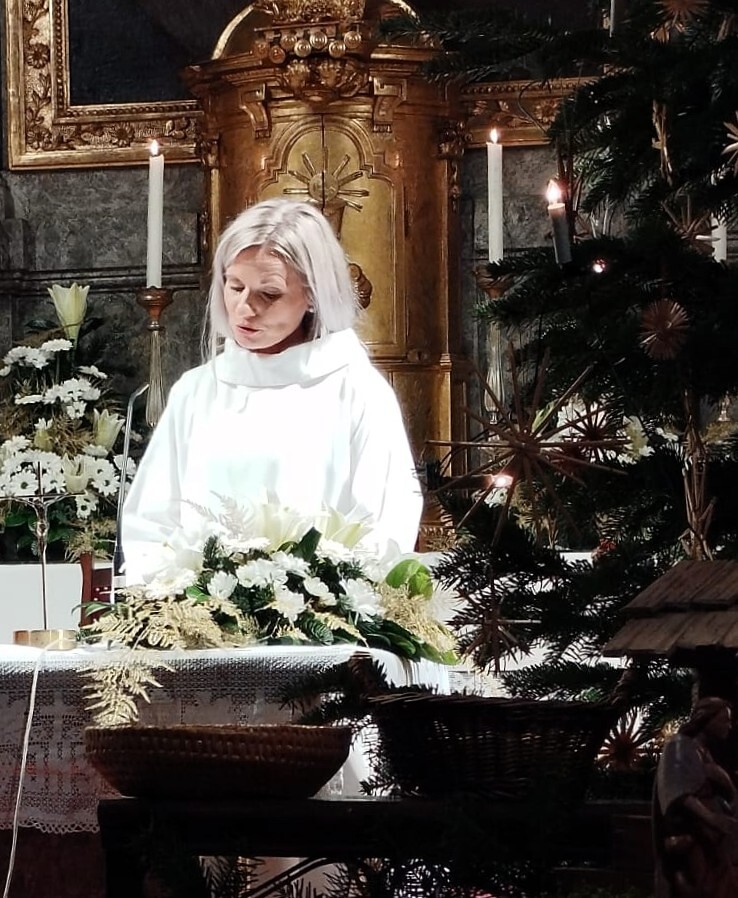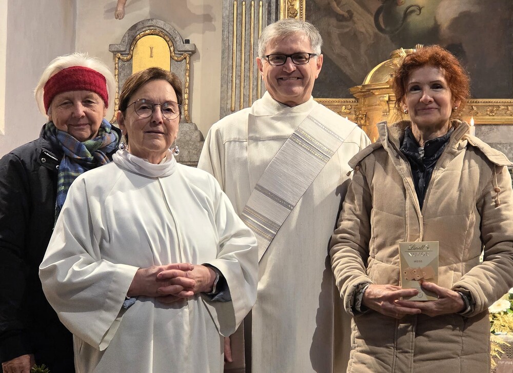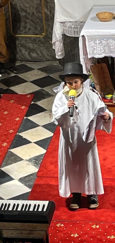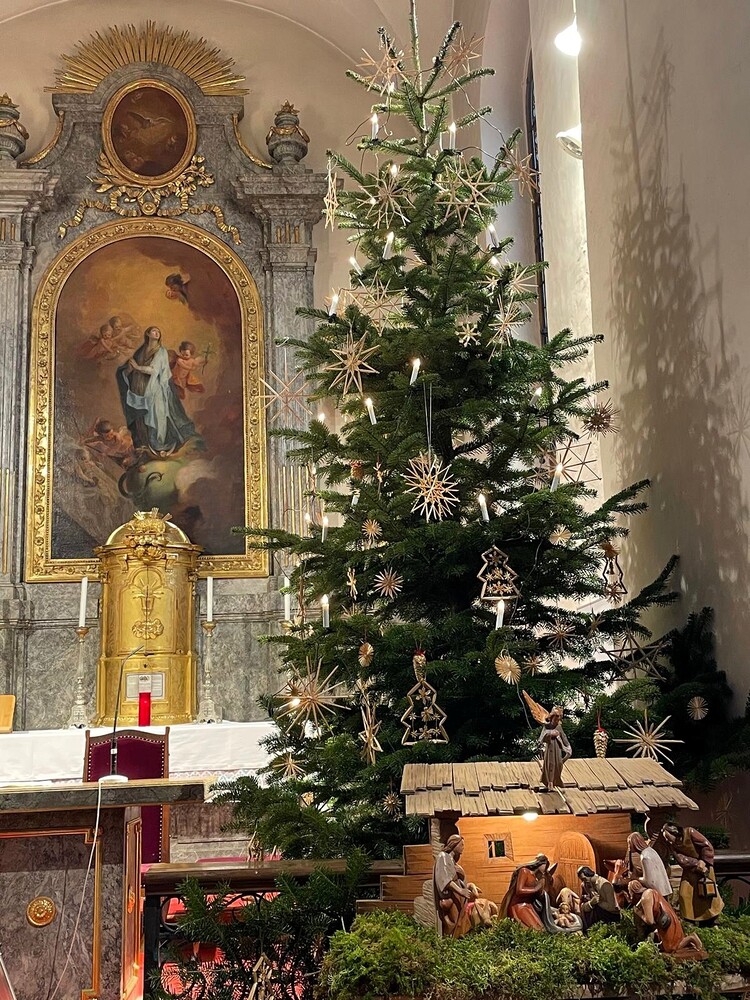 Christmette als Wort-Gottes-Feier Vor der Krippe ließen wir die Zeiten verschwimmen: Susi Linhardt als Hirtin der Antike, Margret Hofmann als moderne Hirtin mit GPS und Stirnlampe. Ines Kvar fasste als Engel die Botschaft zusammen: Jesus bringt Heil für alle – ob sichtbar oder unsichtbar. Für weihnachtliche Stimmung sorgten Herta Finster mit der Querflöte und ihr Mann Robert an der Orgel. Heidi Reinprecht hatte bei der Mette ihren ersten Einsatz als Mesnerin. Mit ihr schauen wir zuversichtlich ins neue Jahr. Danke auch dem Turmbläsertrio für die Begrüßung all jener, die sich trotz Schneegestöbers auf den Weg zur Mette gemacht haben.