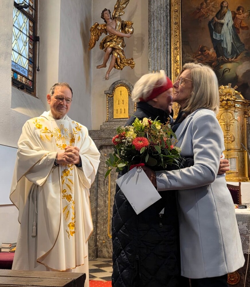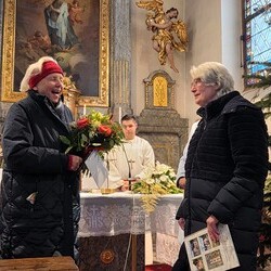 Wir gratulieren Margret Hofmann zum runden Geburtstag mit Blumenstrauß und Fotoalbum und danken für ihren immerwährenden Einsatz für die Pfarre Tobelbad und das Pastorale Pfarrteam. Vikar Gerhard Hatzmann spricht bei der Hl. Messe eine besondere Fürbitte für Margret aus!