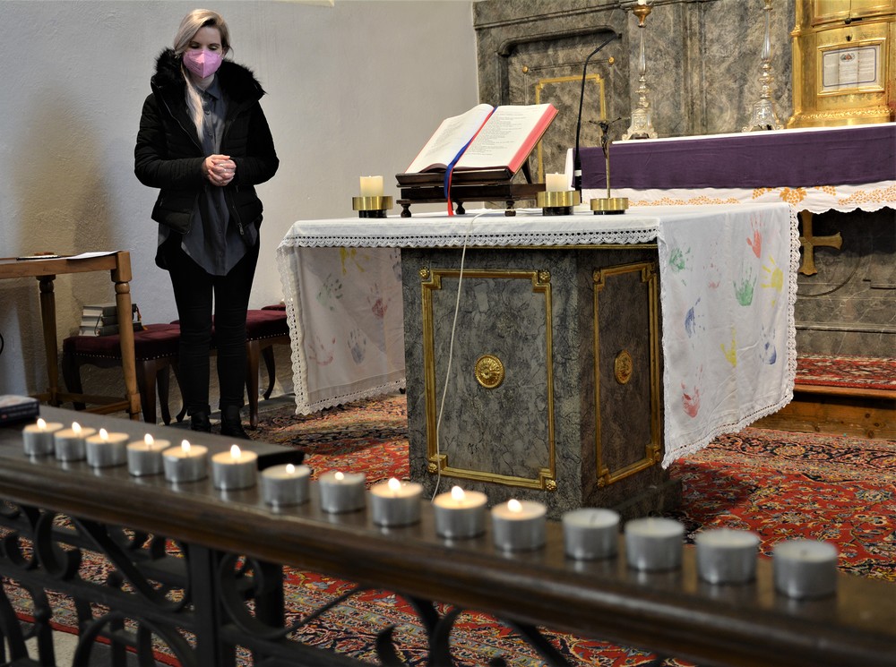 Gläubige werden eingeladen nach vorne zu kommen und Kerzen anzuzünden!